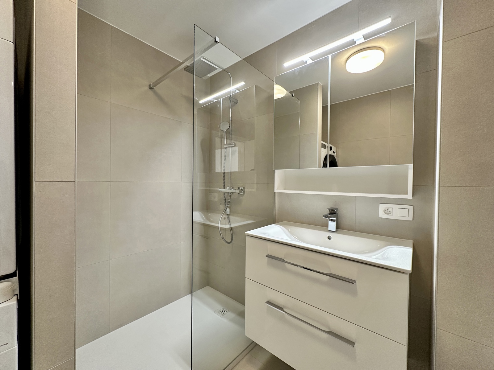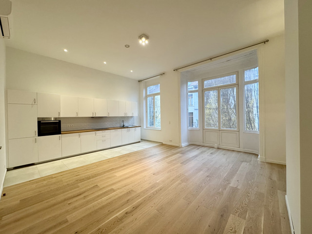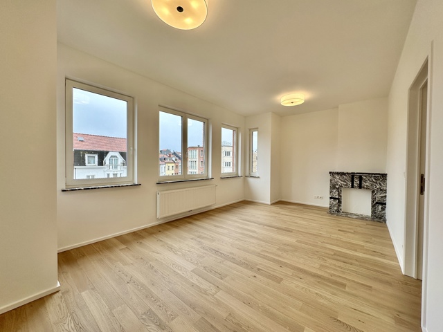 Situé au 32ᵉ étage d’un petit immeuble, cet appartement de 70 m² (selon PEB) offre un confort moderne et une rénovation complète réalisée avec goût. 1ère occupation après travaux !