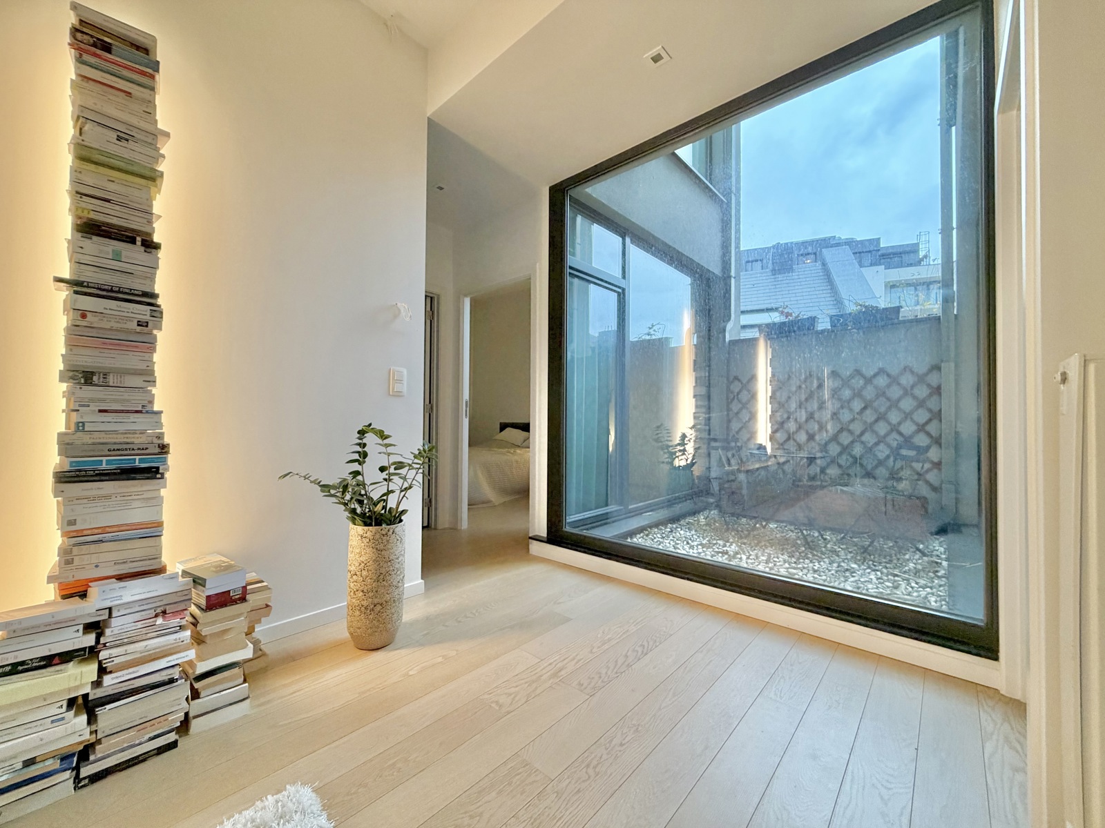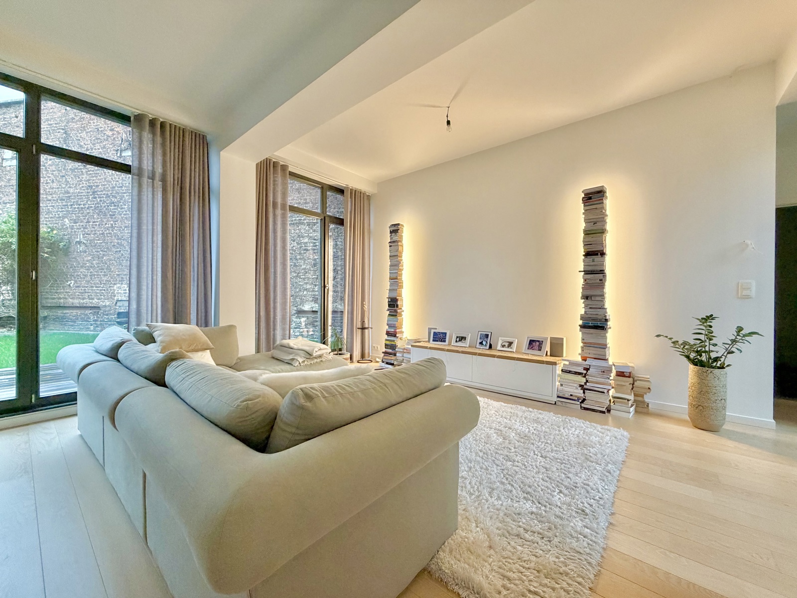 De ruime en lichte woonkamer opent zich naar een terras en een aangename privé-tuin van ongeveer 40 m², een groot voordeel midden in de stad. De volledig uitgeruste open keuken vormt een harmonieuze aanvulling op de leefruimte. Het slaapgedeelte omvat drie slaapkamers, waaronder een master suite met eigen badkamer, evenals een tweede badkamer. Een kleine binnenkoer van 5 m² biedt extra rustige ruimte.