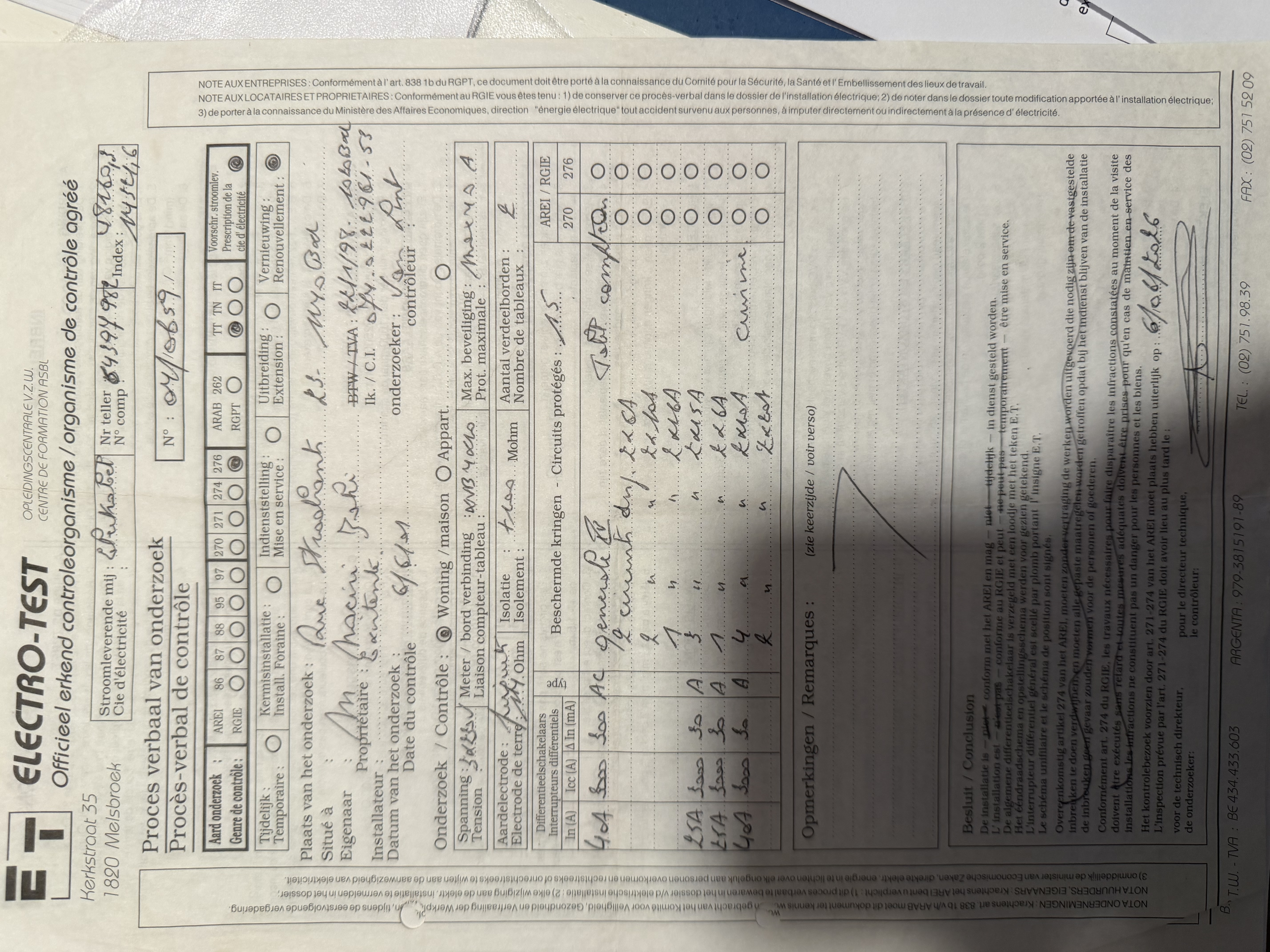 • Datum elektriciteitskeuring