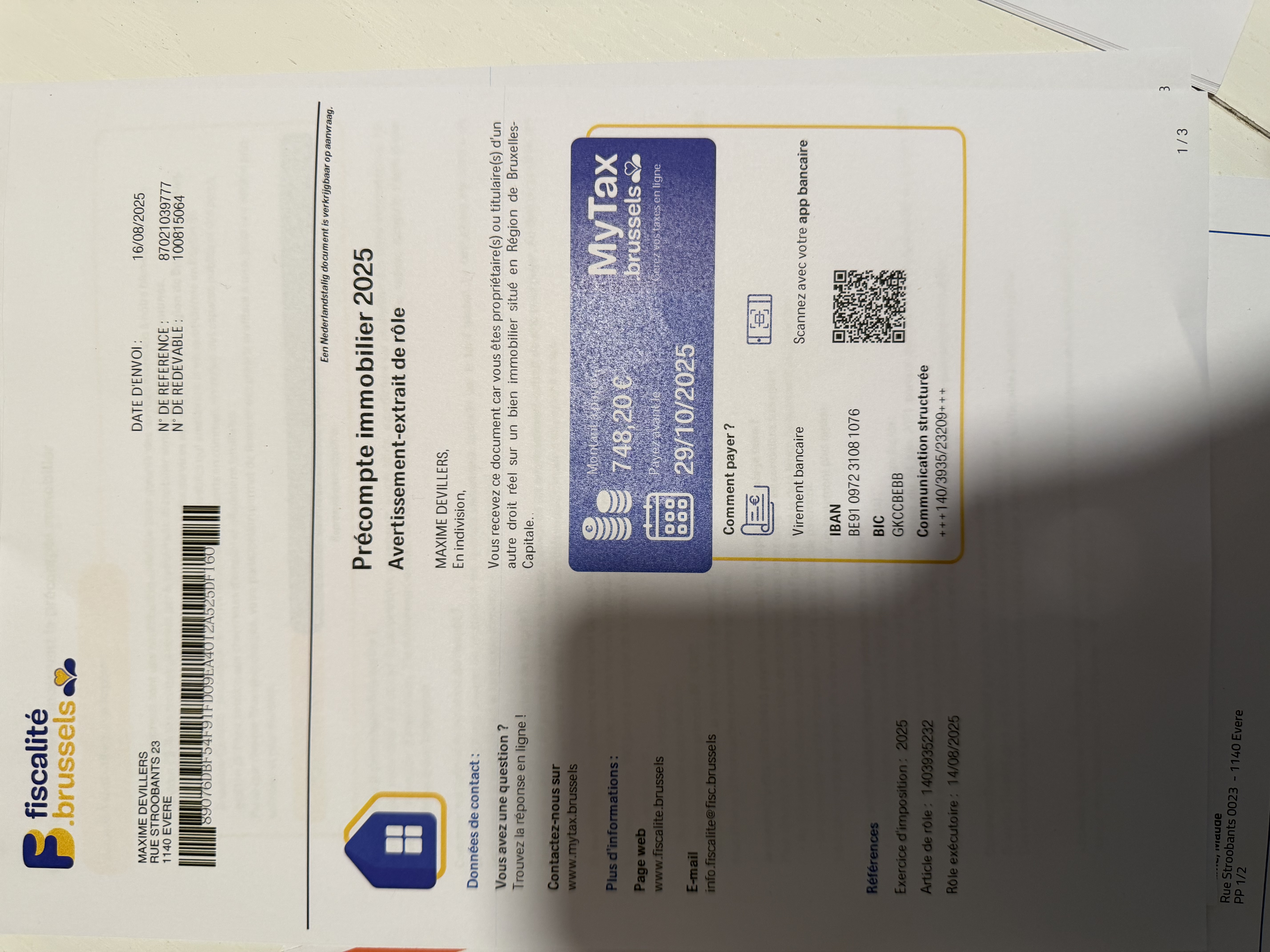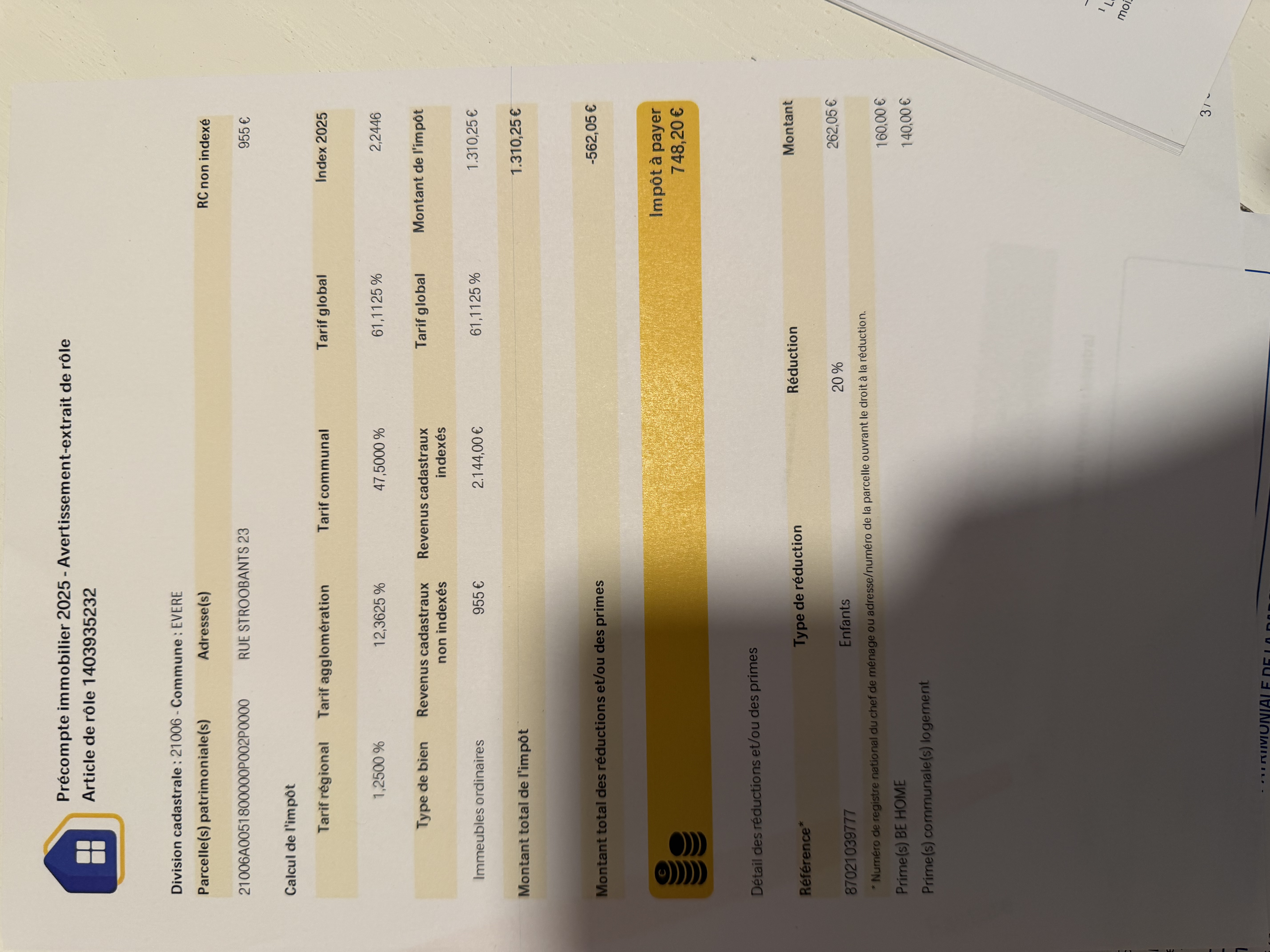 • Onroerende voorheffing - bedrag 748